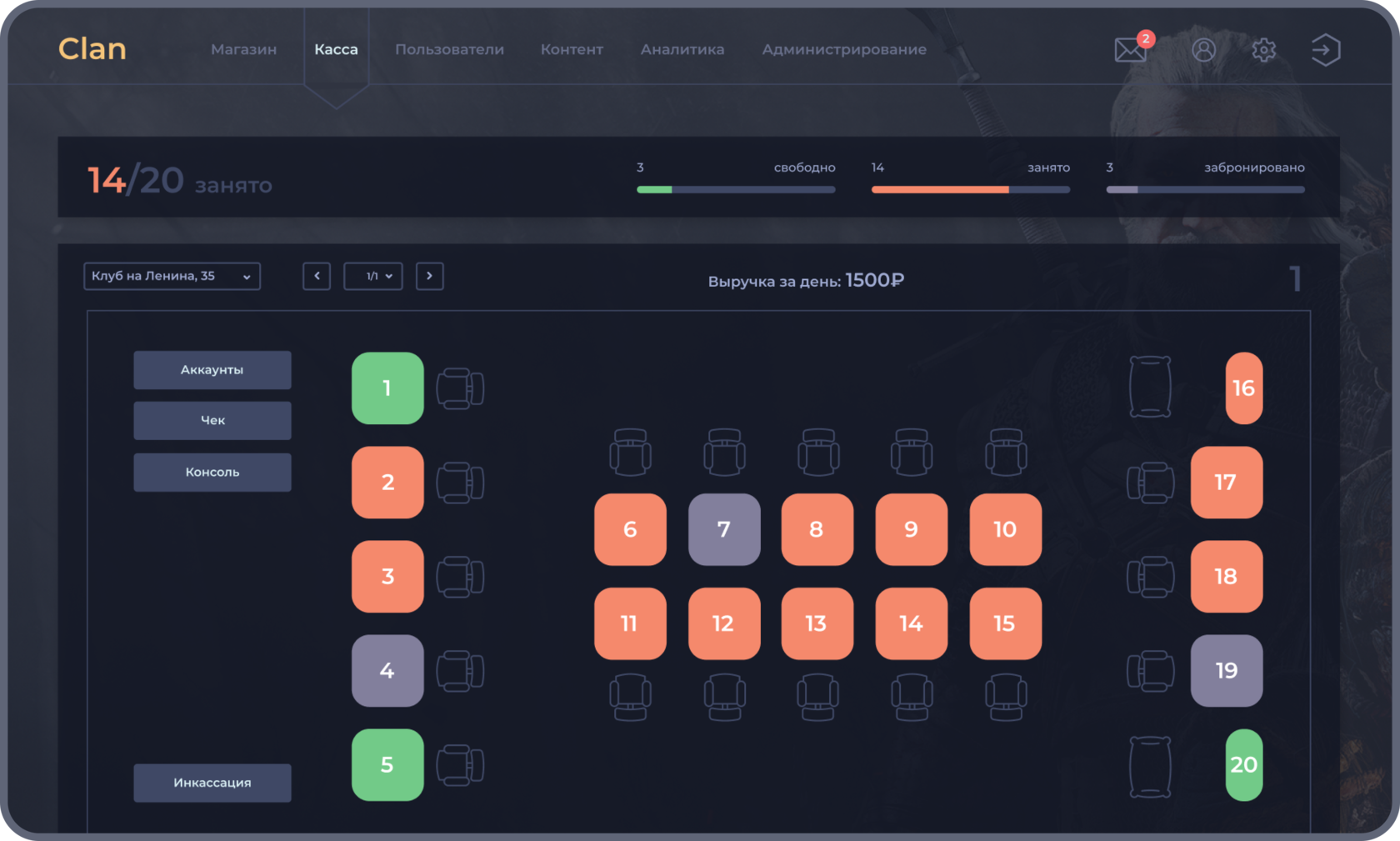 1. Погрузились в нишу кибер-клубов и изучили бизнес-процессы заказчика. Сформировали ТЗ и зафиксировали функционал системы.